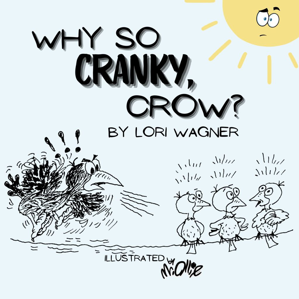 Why So Cranky, Crow? is a wordless picture book about an irritable crow annoyed by other birds infringing on “his space” on the wire; that is until his attempt to get rid of the trouble turns his world and attitude upside down. When he needs it most, the crow finds there are others in his world who will lift him up.